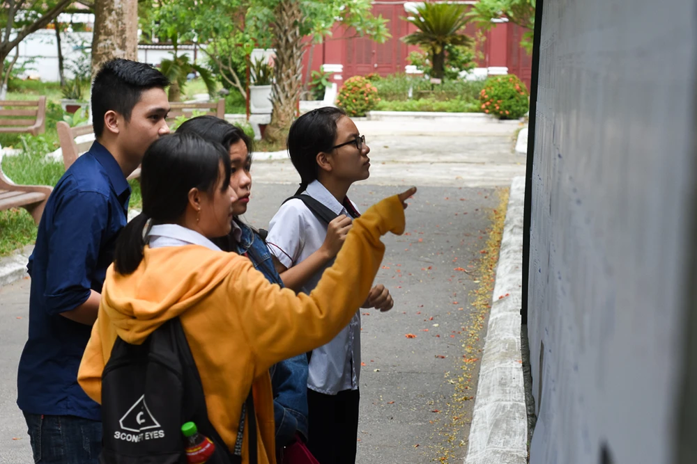 Các thí sinh tìm phòng thi. Ảnh: NGUYỄN DO