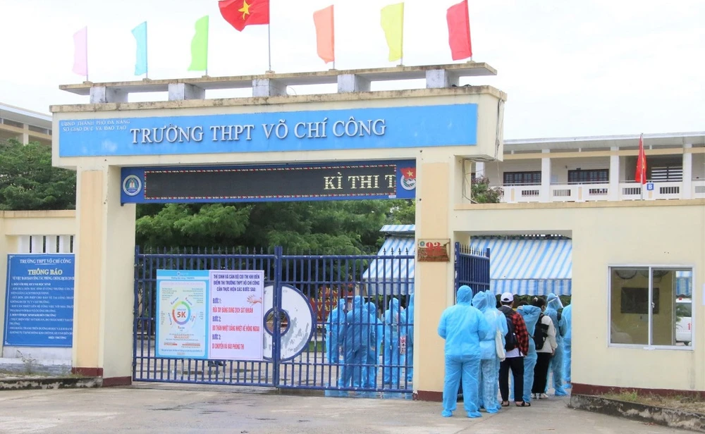Tại điểm thi trường THPT Phạm Phú Thứ (huyện Hòa Vang, Đà Nẵng),lực lượng chức năng tổ chức chăng dây quanh khu vực và yêu cầu phụ huynh dừng xe cách điểm thi tối thiểu 50m. Tất cả thí sinh đến điểm thi được lực lượng tình nguyện viên hướng dẫn và tiếp đón.