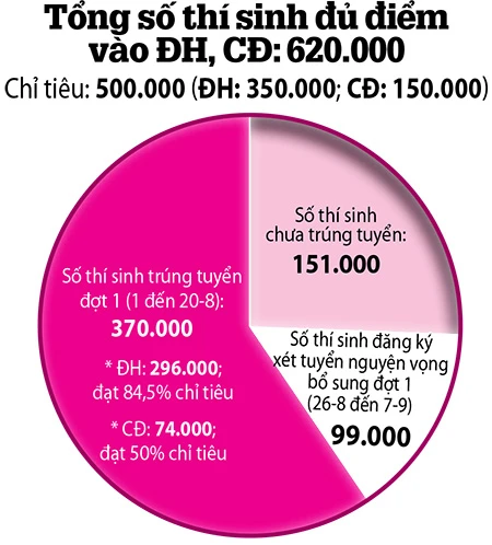 Nguồn tuyển, chỉ tiêu và kết quả xét tuyển ĐH, CĐ tính đến ngày 7-9. Ảnh: P.ĐIỀN. Đồ họa: H.LOAN