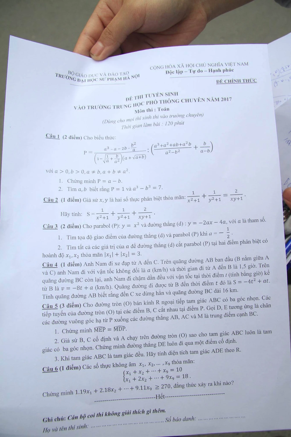 Còn em Lý Khánh Nam, Trường THCS Thăng Long, cho rằng đề thi vừa sức, Nam cho biết câu hình học khá mất thời gian, ở câu 6 do quá khó nên Nam không làm được. Mặc dù vậy Nam vẫn tự tin mình được 5-6 điểm.
