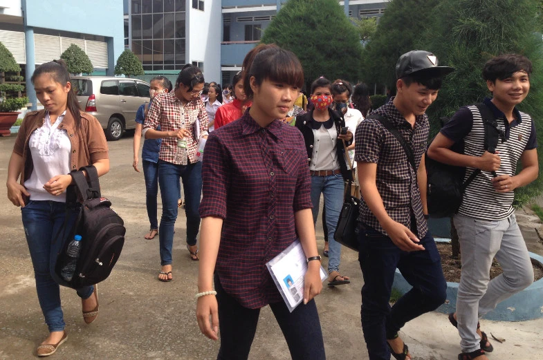 Đa số thí sinh phấn khởi vì làm tốt bài thi cao đẳng hệ . Ảnh: P.ĐIỀN