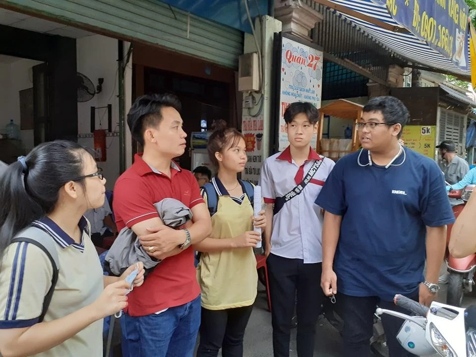 Các em trao đổi với thầy Phạm Hồng Nam sau môn thi
