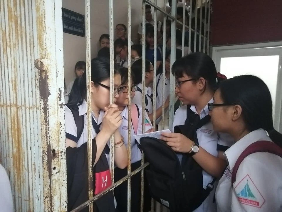 Thí sinh đầu tiên rời phòng thi tại điểm THPT Gia Định.