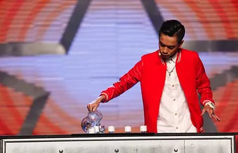 Trần Tấn Phát tự rót ly acid trong tiết mục biểu diễn ở Vietnam’s Got Talent, là một trong những căn cứ làm khán giả nghi ngờ anh tạo scandal. Ảnh: BHD