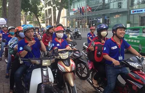 Các sinh viên tình nguyện chở thí sinh đến nhận chỗ trọ miễn phí. Ảnh: P.ĐIỀN