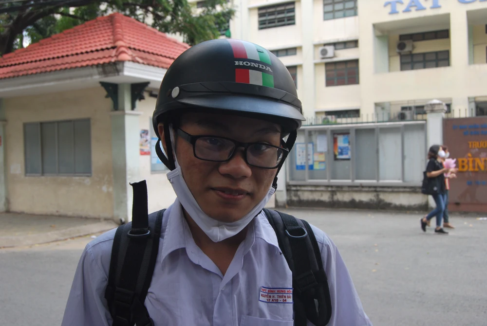 Với một tâm trạng rất tự tin, em Nguyễn Hà Thiên Bảo, học sinh lớp 12, trường THPT Bình Hưng Hòa (quận Bình Tân) cho biết do em đã học bài đầy đủ nên tâm trạng cảm thấy rất bình thường, tự tin và không lo lắng, vì nếu lo lắng thì sẽ không làm bài được. Ngoài ra em còn chia sẻ thêm năm nay nhiều bài học được giảm tải do dịch COVID-19 nên có thể đề năm nay sẽ dễ hơn những năm trước.