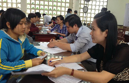 Sáng 14-7, thí sinh cả nước đến làm thủ tục dự thi vào các trường CĐ. Theo báo cáo của Bộ GD&ĐT chiều 14-7, kỳ thi CĐ năm nay cả nước có gần 260.000 thí sinh đăng ký dự thi; số thí sinh đến làm thủ tục dự thi là gần 165.000, đạt tỉ lệ 63,9%. Ghi nhận cho thấy số lượng thí sinh đăng ký dự thi vào các trường CĐ giảm rất nhiều.