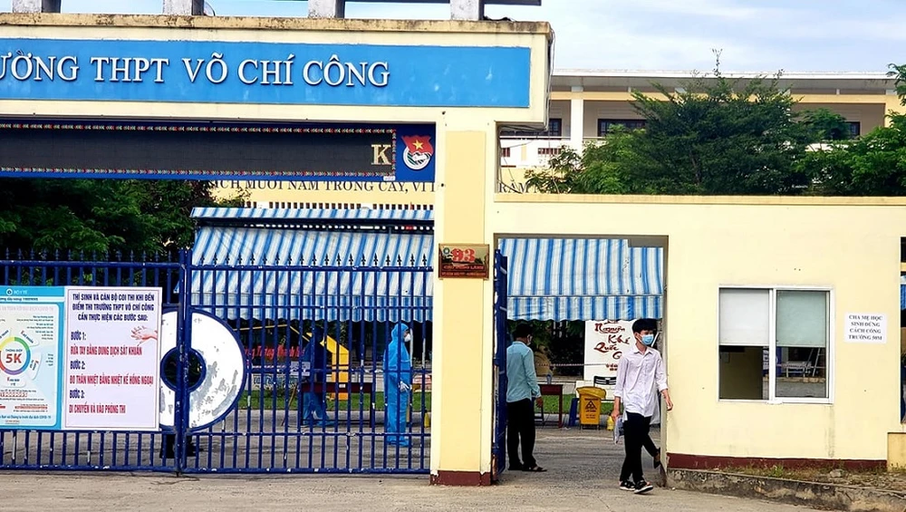 Tại điểm thi Trường THPT Cẩm Lệ (Đà Nẵng), các cơ quan chức năng đã hướng dẫn người nhà khi đưa đón thí sinh cần phải đứng cách xa cổng trường 100m và thực hiện nghiêm túc các biện pháp phòng, chống dịch bệnh, không tập trung đông người xung quanh điểm thi.