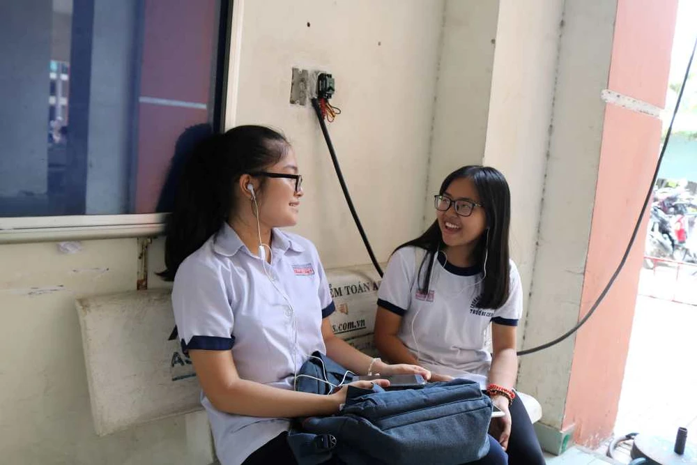 Học sinh tự tin sau môn tiếng Anh. Ảnh: THỦY TRÚC