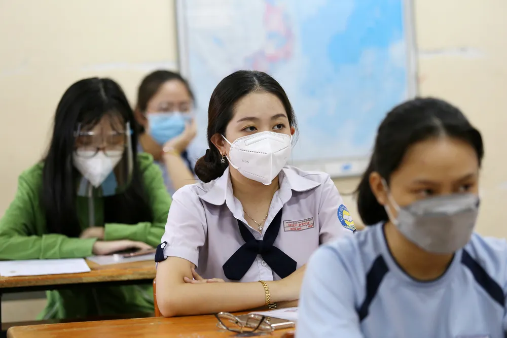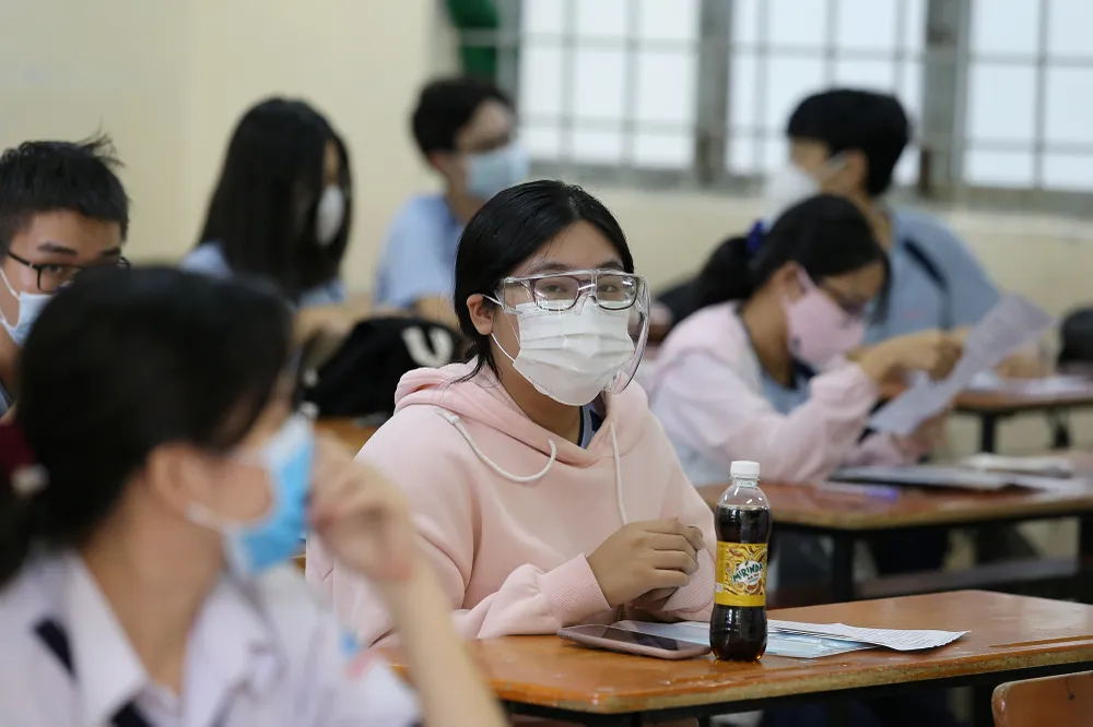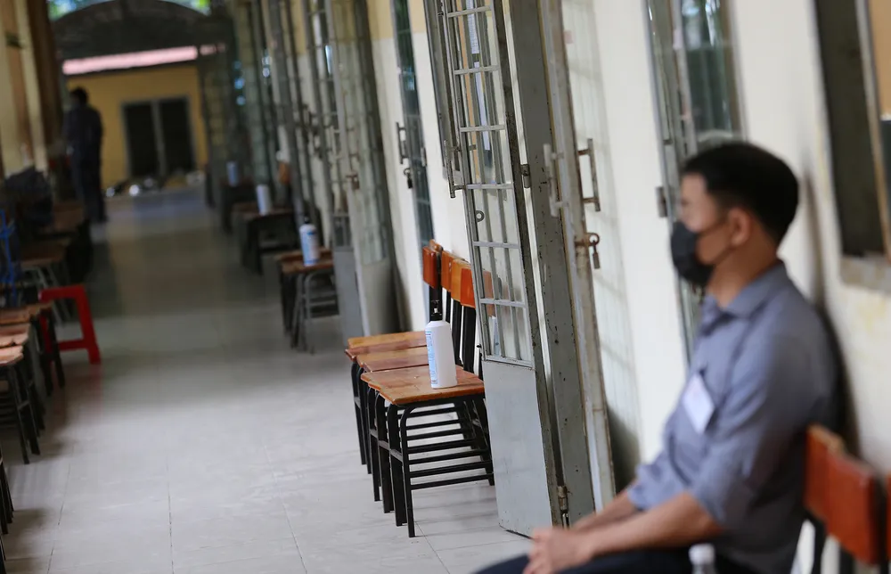 Nước rửa tay sát khuẩn được trang bị trước mỗi phòng thi để phục vụ thí sinh và cán bộ coi thi. Sáng mai 7-7, thí sinh bắt đầu thi hai môn đầu tiên là Ngữ văn và Toán. Ngày 8-7, buổi sáng thí sinh làm bài thi tổ hợp Khoa học Tự nhiên (gồm Vật lí, Hoá học, Sinh học) và Khoa học Xã hội (Lịch sử, Đại lý, Giáo dục công dân), còn buổi chiều thi môn Ngoại ngữ.