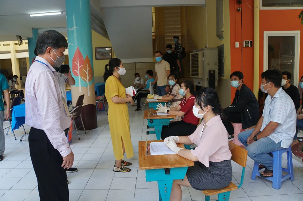 Có mặt kiểm tra công tác lấy mẫu tại trường tiểu học Nguyễn Bỉnh Khiêm, ông Nguyễn Văn Hiếu, Phó giám đốc phụ trách Sở GD- ĐT cho biết: 155 điểm xét nghiệm Covid-19 trên toàn thành phố sẽ vận hành tương tự để lấy mẫu cho toàn bộ thí sinh (gần 88.000 em), cán bộ, giáo viên và nhân viên phục vụ kỳ thi tốt nghiệp đợt 1 (khoảng 17.000 người). Điểm lấy mẫu xét nghiệm là trường học kế bên điểm thi - để thí sinh thuận tiện đi lại.