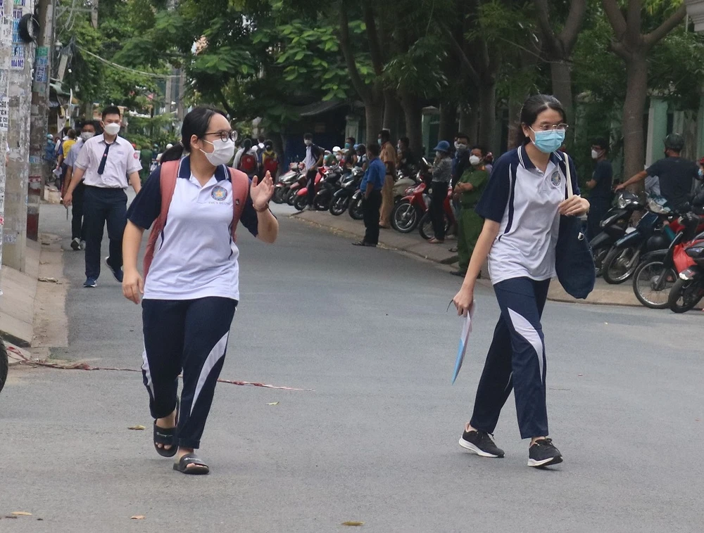 Thí sinh rời phòng thi sau khi kết thúc môn thi cuối cùng của kỳ thi tốt nghiệp THPT. Ảnh: THANH TIỀN