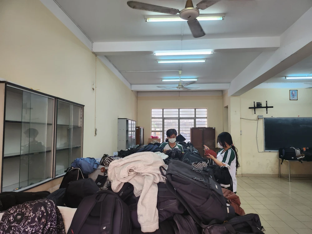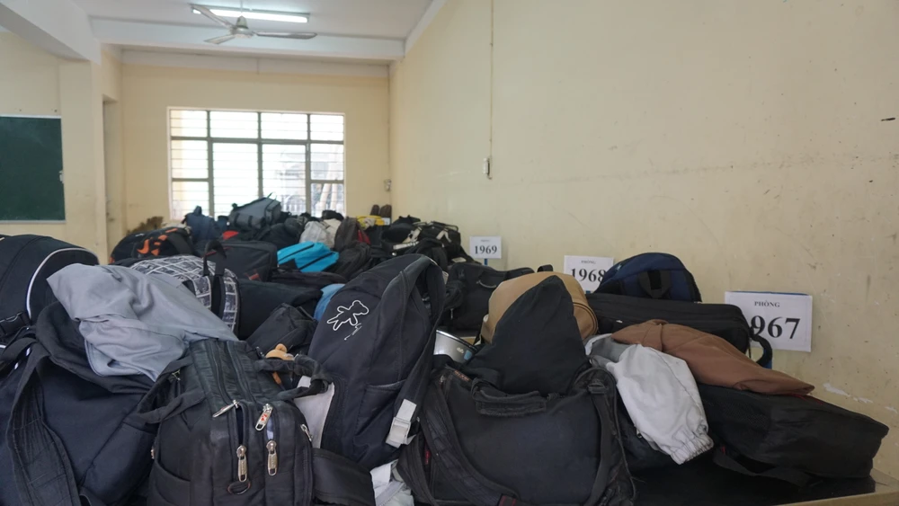 Hai phòng giữ đồ chật kín đồ đạc của thí sinh. Ảnh: Nguyễn Quyên |