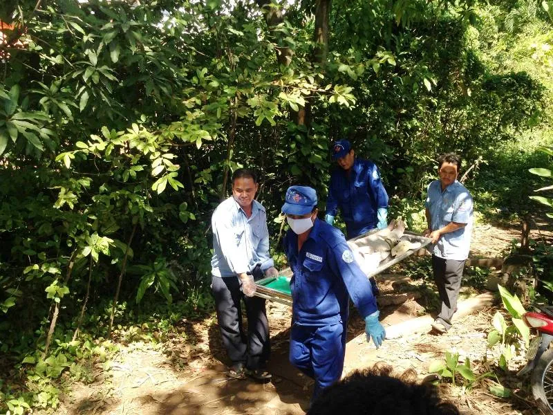Sau khi hoàn tất thủ tục khám nghiệm, 10 giờ sáng cùng ngày, thi thể người đàn ông được di chuyển khỏi hiện trường.