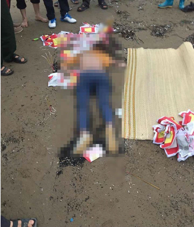 Thi thể được người dân phát hiện bên bờ biển xã Quảng Nham, Quảng Xương (Thanh Hóa) với nhiều dấu hiệu bất thường.