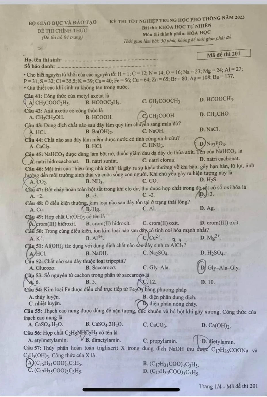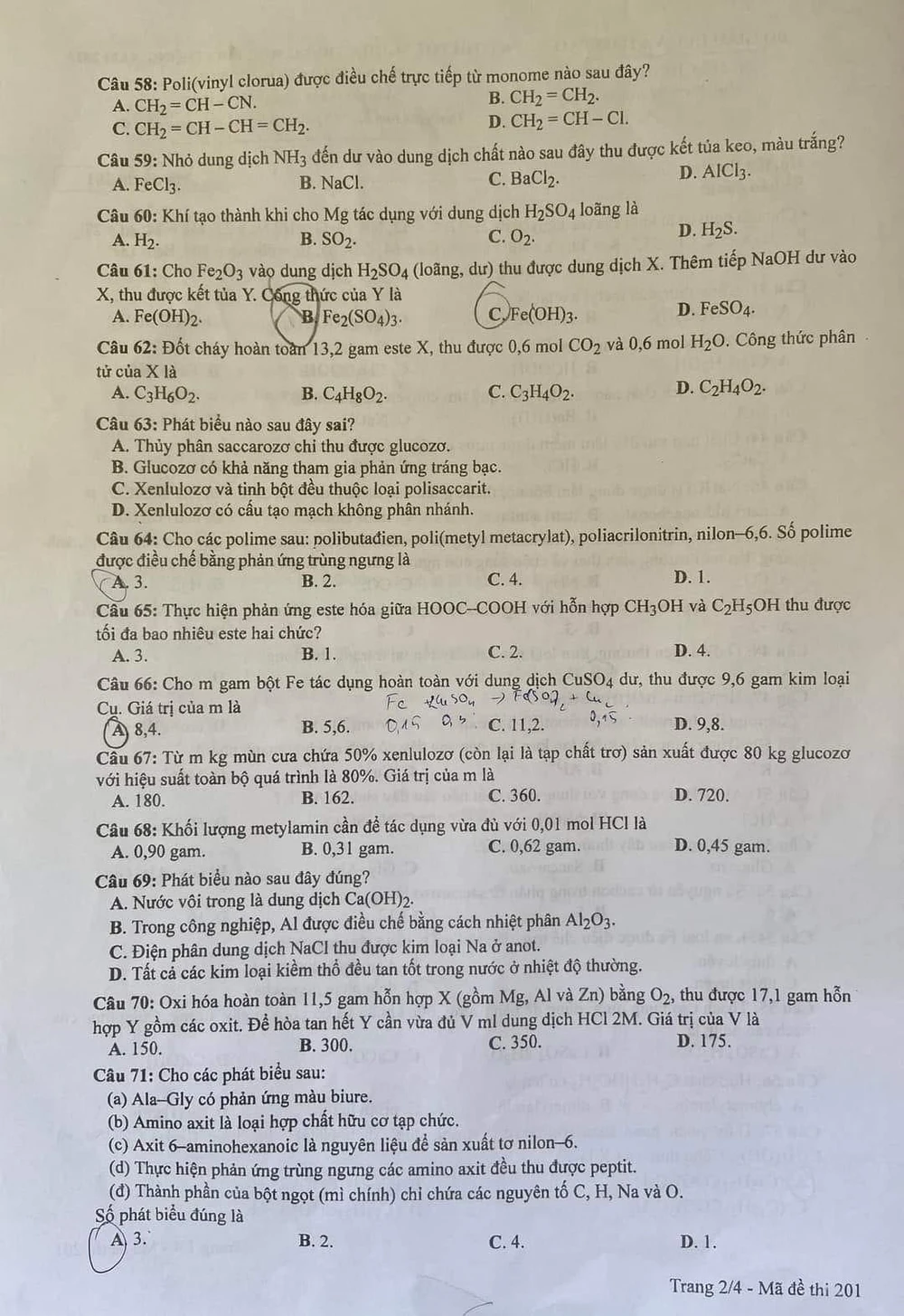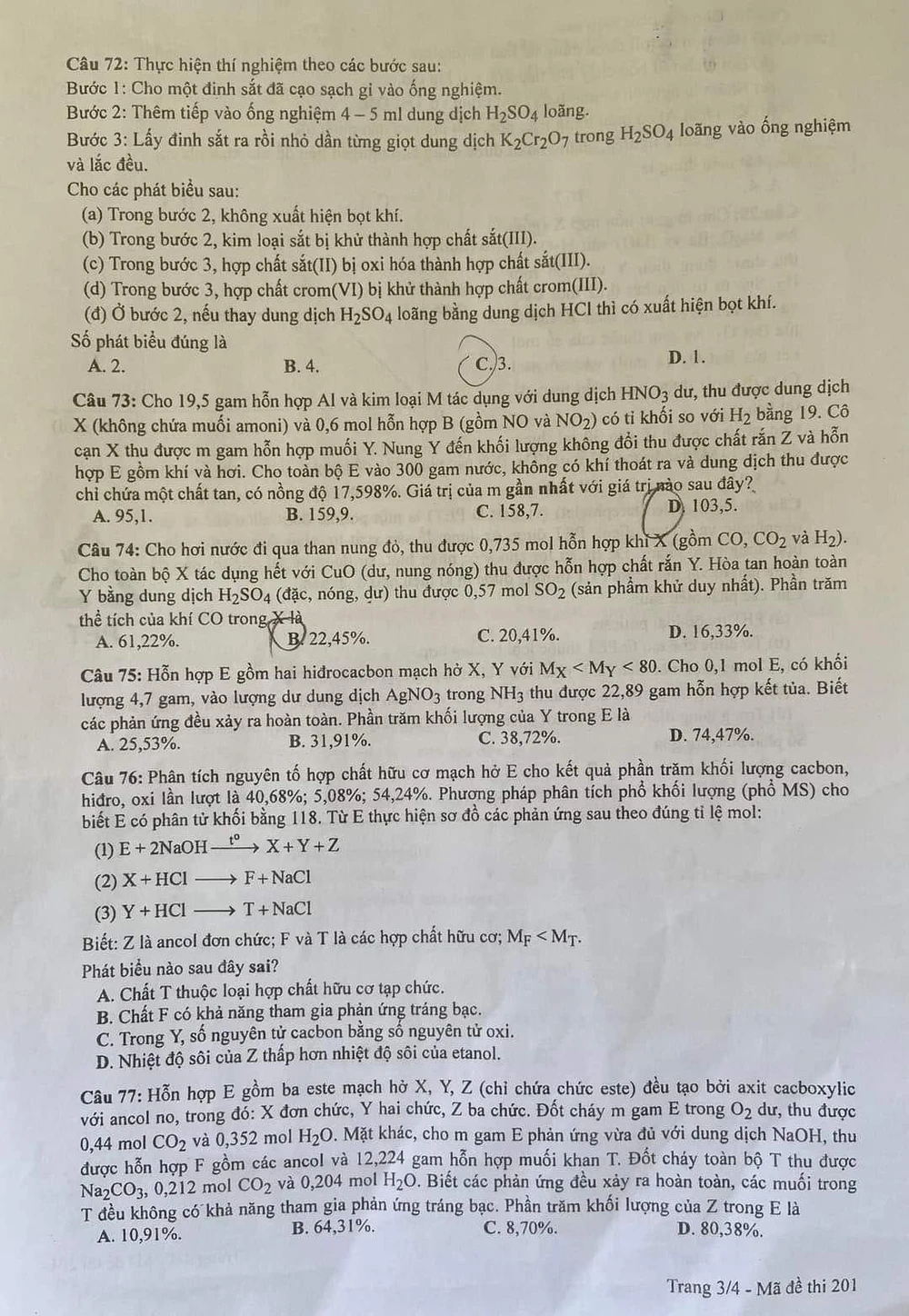 Mã đề 201: