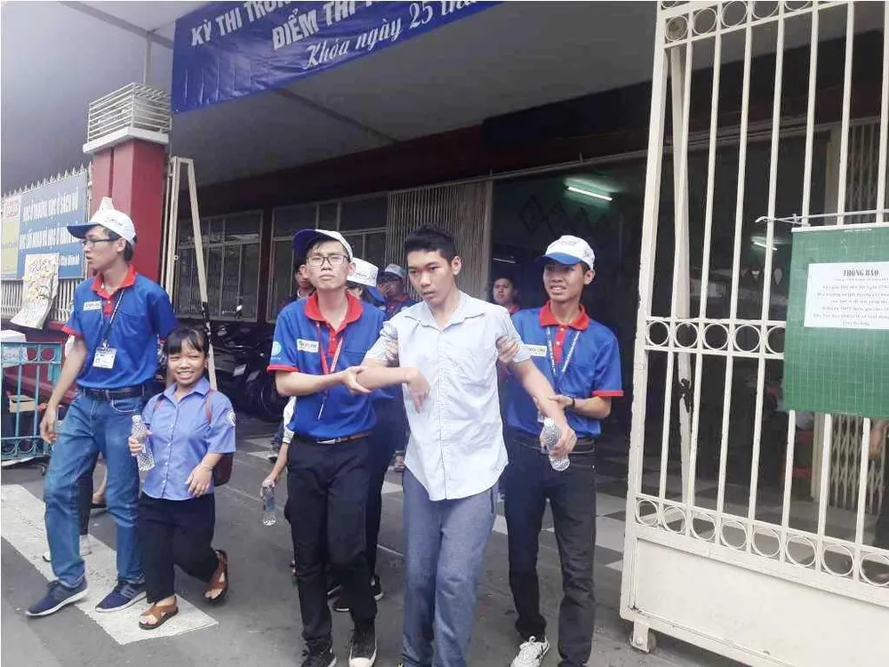Riêng Mai Ngọc Hoàng Hải (quận 7), một thí sinh khuyết tật ở tay, học viên Trung tâm Bảo trợ - Dạy nghề đào tạo việc làm cho người khuyết tật TP.HCM đang cùng các bạn chờ xe của trung tâm đến đón về trường.