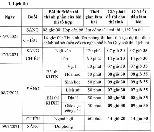 Lịch thi tốt nghiệp THPT năm 2021