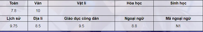 Điểm thi tốt nghiệp THPT của thi sinh có số báo danh XXX12152