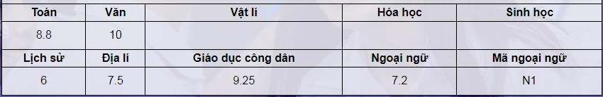 Điểm thi tốt nghiệp THPT của thí sinh có số báo danh 25006XXX