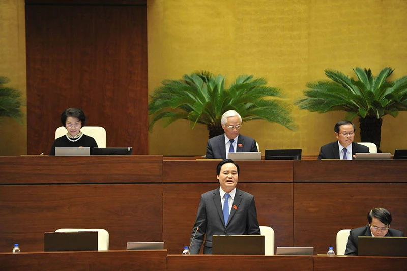 Bộ trưởng Bộ GD&ĐT Phùng Xuân Nhạ đang trả lời chất vấn. Ảnh: Chân Luận