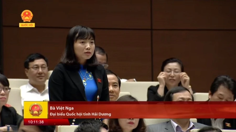 Trước khẳng định của tư lệnh ngành giáo dục, ĐB Nguyễn Thị Việt Nga (Hải Dương) tranh luận: “Bộ trưởng nói thi trắc nghiệm là ưu việt tuyệt đối nhưng tôi thấy ngược lại”.