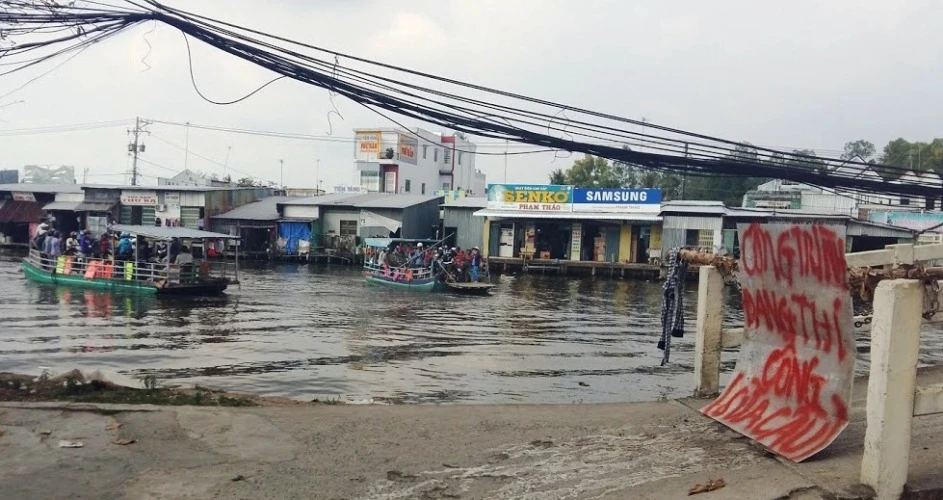 Từ 30-12-2015, toàn thị trấn U Minh - trung tâm của huyện đột ngột bị cô lập, người dân phải đi phà vào thị trấn.