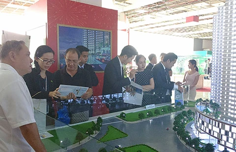 Khách hàng tìm hiểu mua nhà tại một triển lãm dự án bất động sản (quận 7, TP.HCM). Ảnh: QUANG HUY