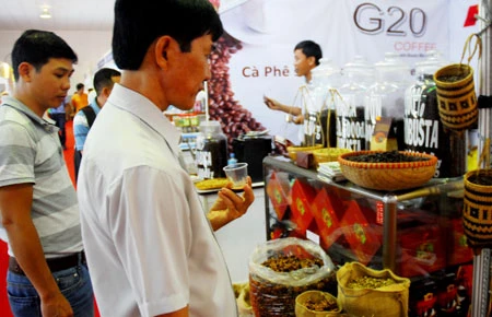 Lượng xuất khẩu cà phê giảm hẳn so với các năm trước. Trong ảnh: Giới thiệu cà phê xuất khẩu tại Hội chợ Nông nghiệp xuất khẩu 2013. Ảnh: HTD