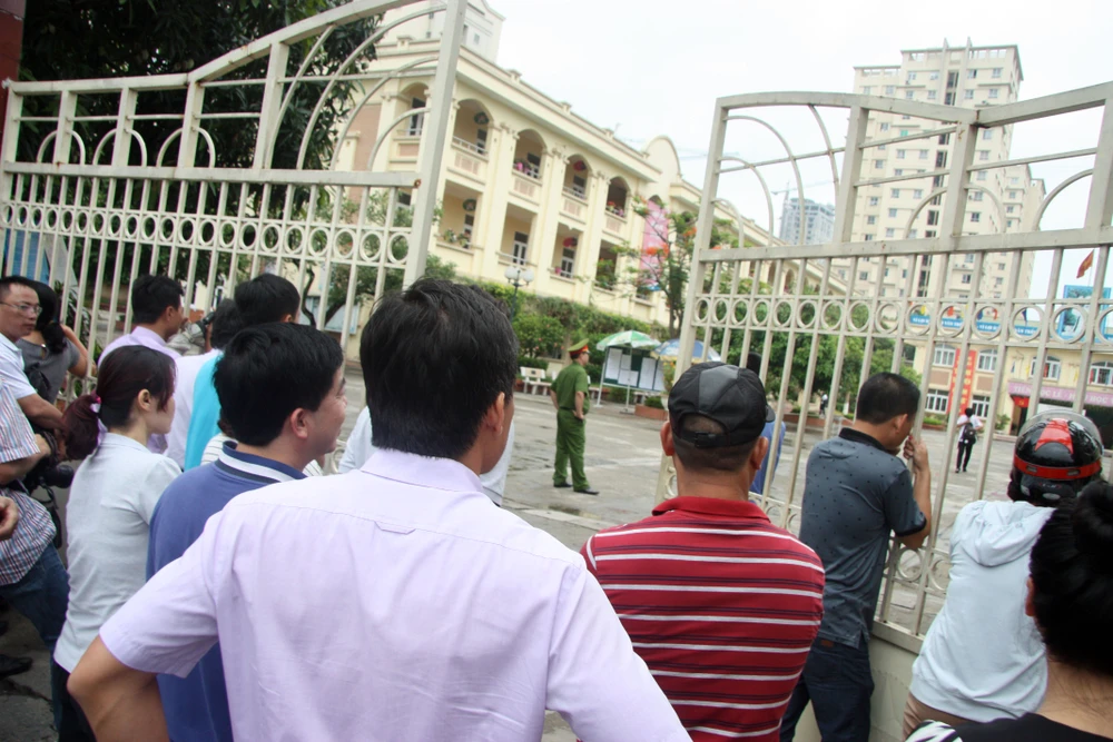 Rất đông phụ huynh tập trung ở cổng trường chờ đón con em mình.