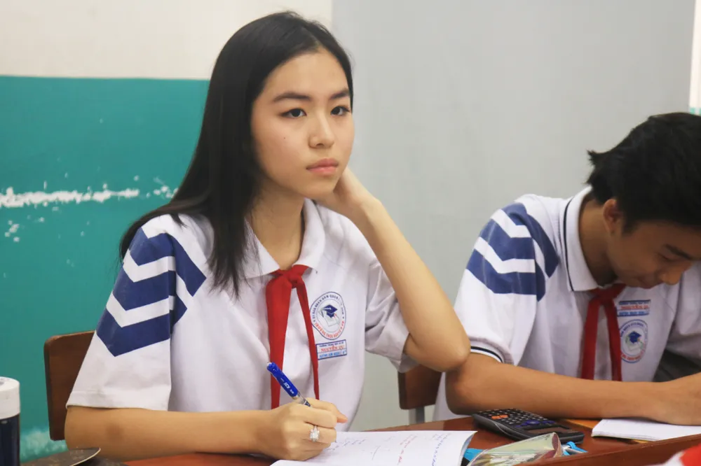 Học sinh lớp 9 trường THCS Nguyễn Du, quận 1 trong một tiết học. Ảnh: KHÁNH CHI