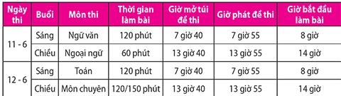 Kỳ thi năm nay sẽ diễn ra vào hai ngày 11 và 12-6. TS sẽ dự thi ba môn gồm toán, ngữ văn và ngoại ngữ (tiếng Anh, tiếng Pháp hoặc tiếng Nhật). Các TS thi môn chuyên sẽ thi chiều 12-6.