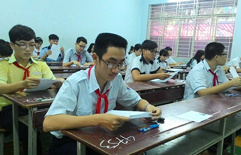 Thí sinh dự thi kỳ thi lớp 10 tại hội đồng thi Trường THCS Coltte năm 2015. Ảnh: P.A