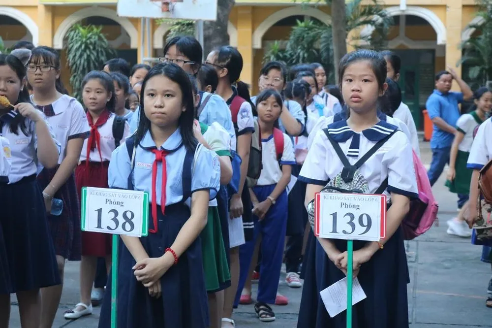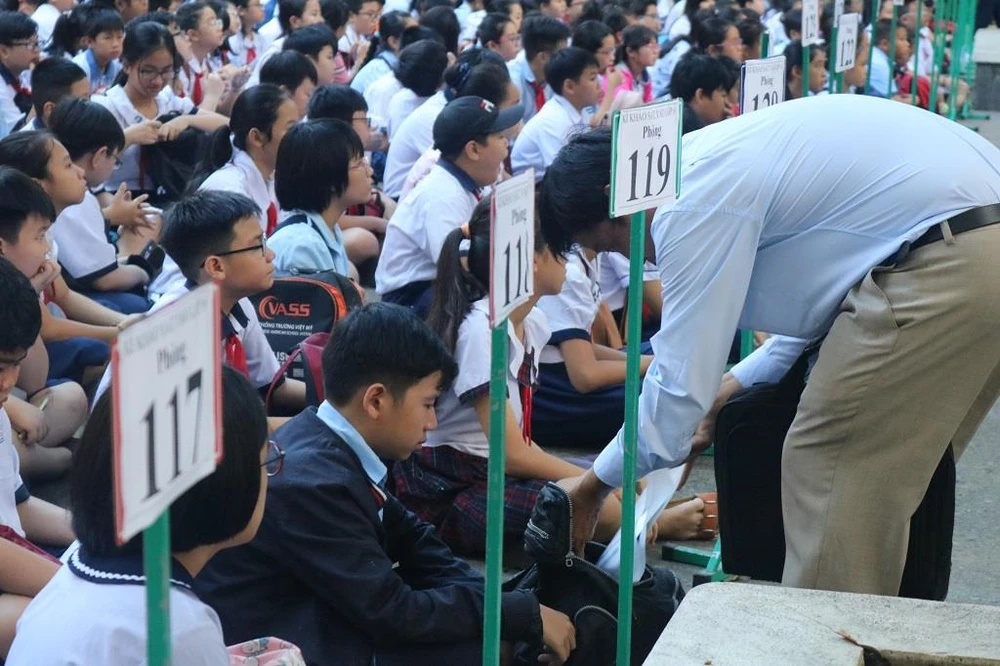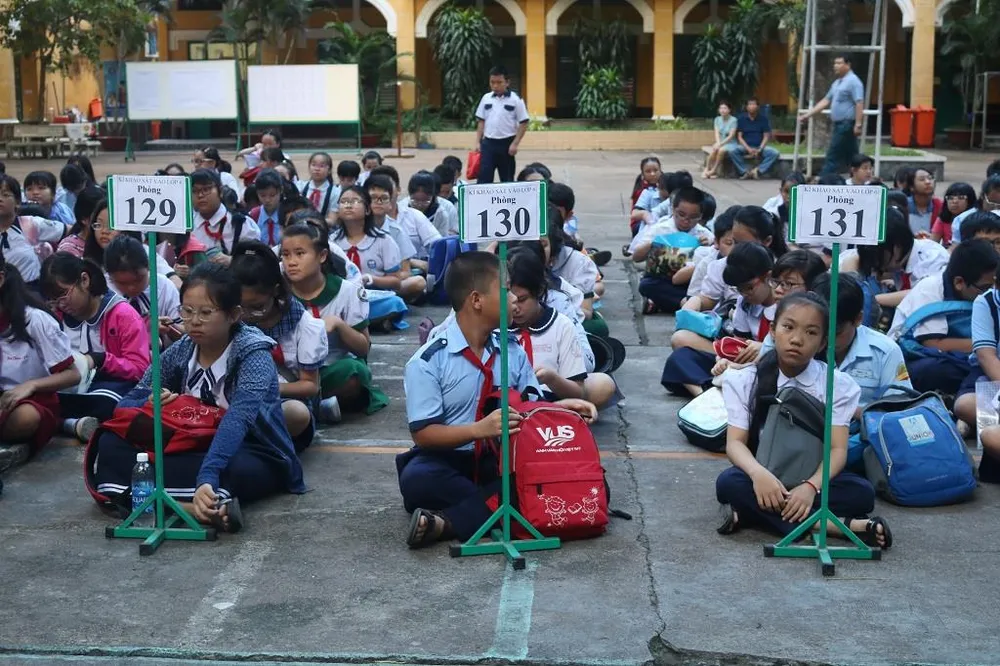 Thí sinh lo lắng khi nghe giám thị phổ biến quy chế thi, đây có lẽ là kỳ thi nghiêm ngặt nhất của các thí sinh mới hoàn thành xong chương trình tiểu học.