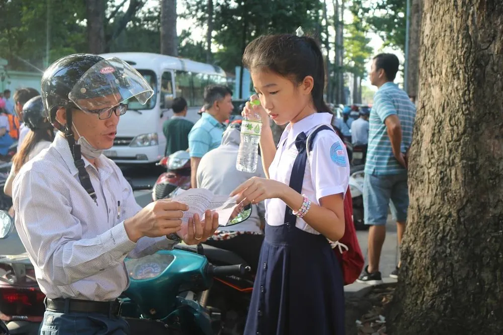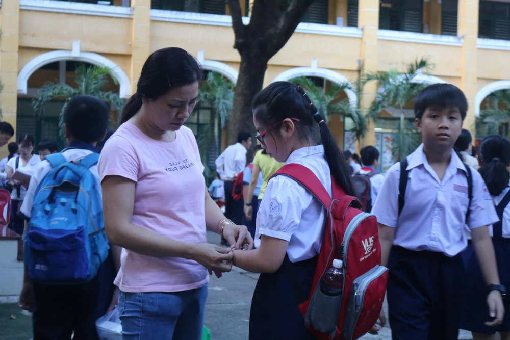 Phụ huynh đeo đồng hồ cho để con dễ dàng ước lượng thời gian làm bài.