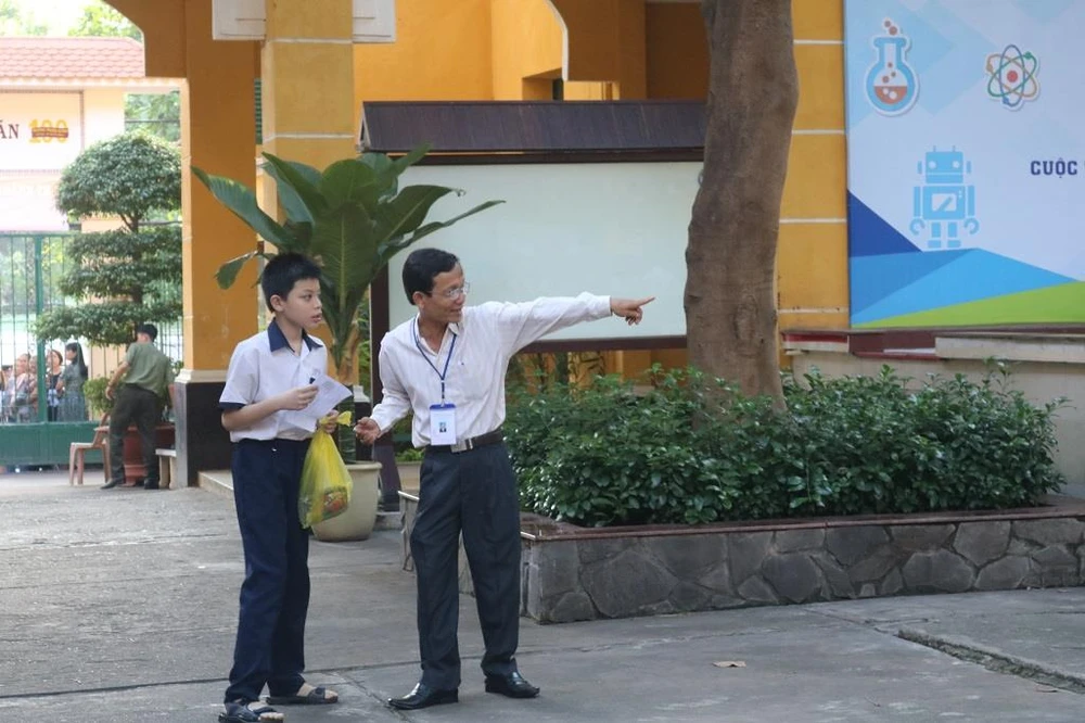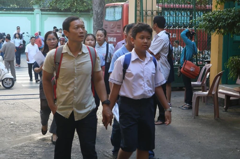 Từ sáng sớm phụ huynh đã đưa con đến điểm thi THPT Trưng Vương (quận 1, TP.HCM) để tiến hành tập trung chuẩn bị bước vào bài khảo sát.