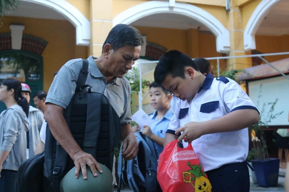 Phụ huynh cố gắng nán lại để kiểm tra dụng cụ cho con.