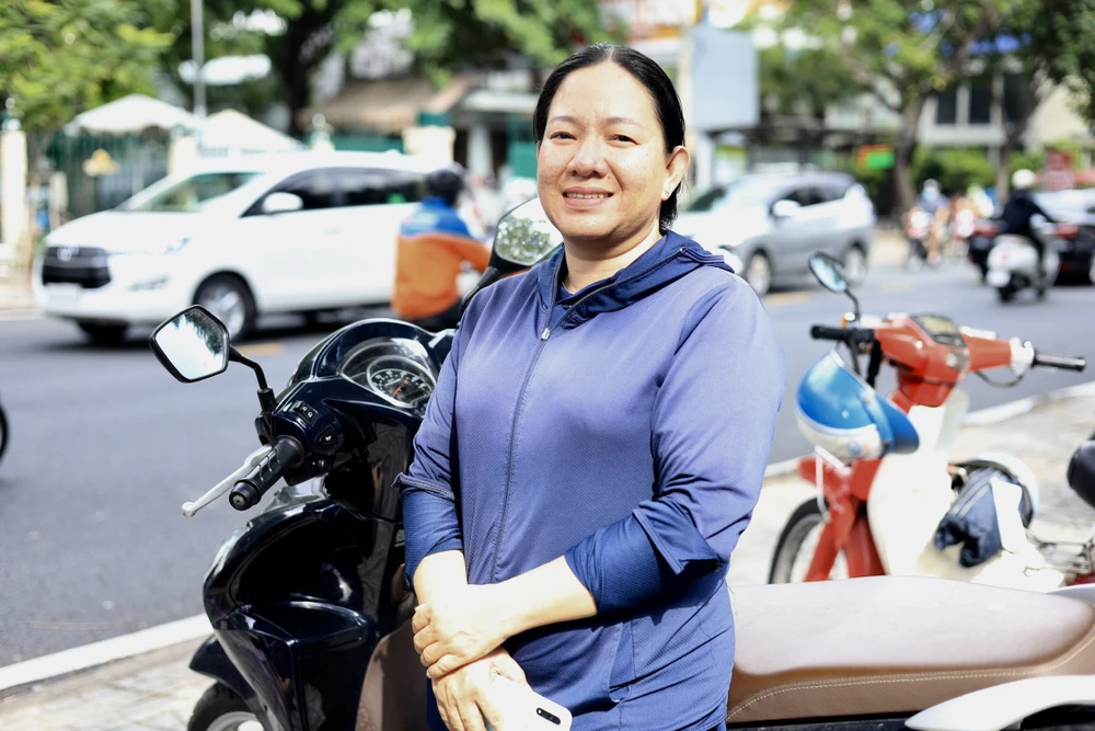 Chị NT có con học tại Trường THCS Phạm Văn Chiêu, quận Gò Vấp, sau khi chở con vào điểm thi tại Trường THCS Phan Tây Hồ, quận Gò Vấp, chị ghé mua ly nước mía rồi ngồi chờ con trước cổng trường.