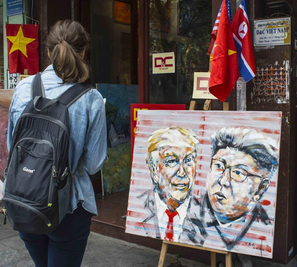 Nhân sự kiện Hội nghị thượng đỉnh Mỹ-Triều lần 2 đang diễn ra tại Hà Nội, điểm bán gallery ở số 17 Hàng Gai, Hà Nội đã tung ra bộ tranh độc đáo, vẽ Chủ tịch Triều Tiên Kim Jong-un và Tổng thống Mỹ Donald Trump. Điều khá thú vị là Chủ tịch Kim được vẽ giống như một cậu trai có khuôn mặt hiền lành, chừng 16 tuổi (Kim Jong- un sinh năm 1984). Nhiều người đi qua đã ngỡ ngàng và thốt lên: “Ôi, sao mà như đứa trẻ thế này!”.