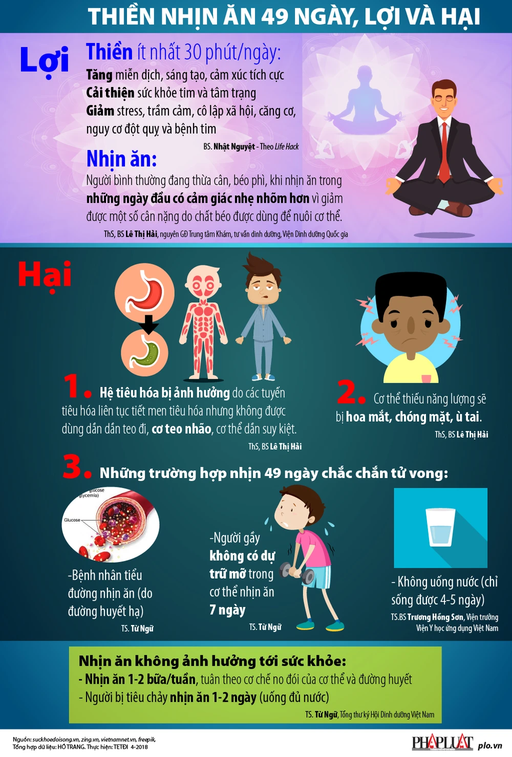(PLO)- Vừa qua thông tin về doanh nhân Đặng Lê Nguyên Vũ - ông chủ cà phê Trung Nguyên, cùng một số người tham gia vào quá trình thiền nhịn ăn lên tới 49 ngày khiến dư luận xôn xao. Việc này có lợi và hại cho sức khỏe như thế nào? Dưới đây là ý kiến của các chuyên gia về sức khỏe và dinh dưỡng: