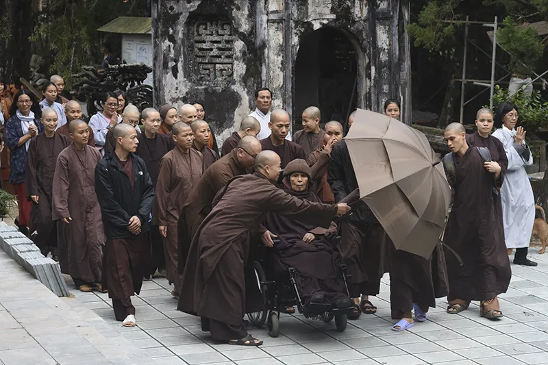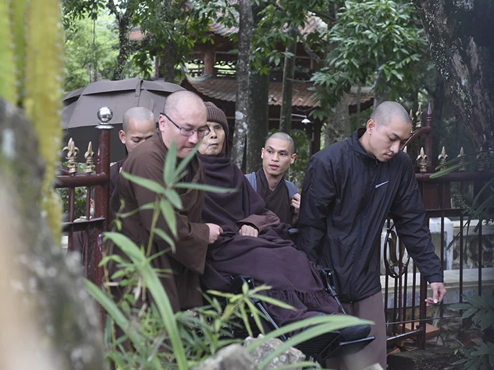 Một tháng trước, thiền sư Thích Nhất Hạnh rời chùa Từ Hiếu đến Làng Mai (Thái Lan) tịnh dưỡng. Khi về lại chùa, thiền sư vẫn giao tiếp với mọi người thông qua ánh mắt và cử chỉ.