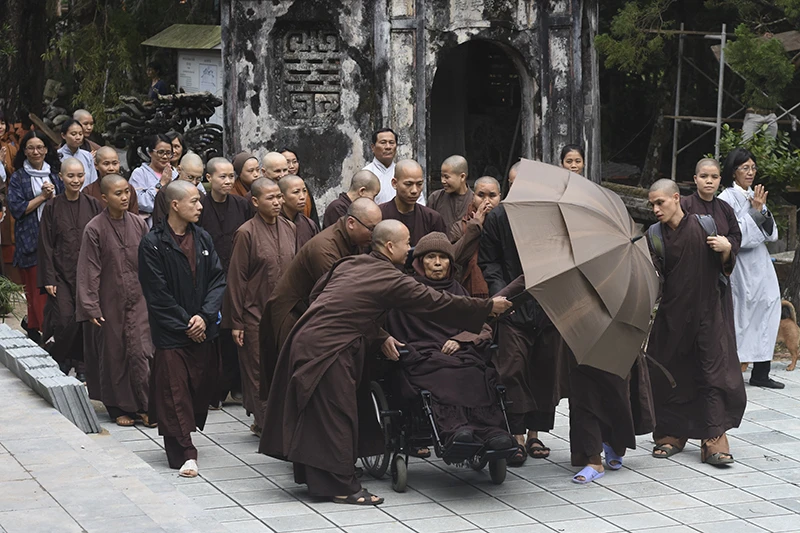 Thiền sư Thích Nhất Hạnh về chùa Từ Hiếu. Ảnh: NGUYỄN DO