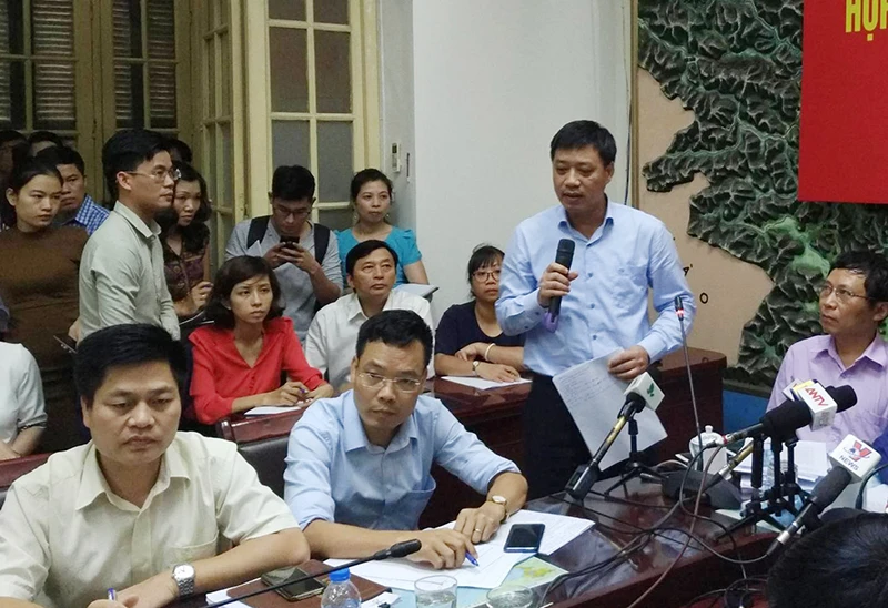 Phóng viên các báo đặt nhiều câu hỏi chung quanh thiệt hại, dự báo mưa bão cùng việc xả nước ở các hồ thủy điện...