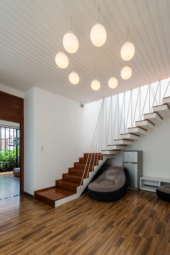 Hệ thống đèn trong nhà cũng rất độc đáo và đơn giản.