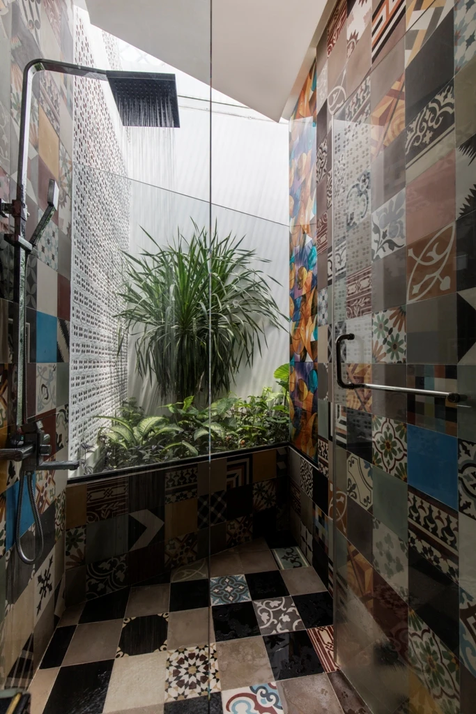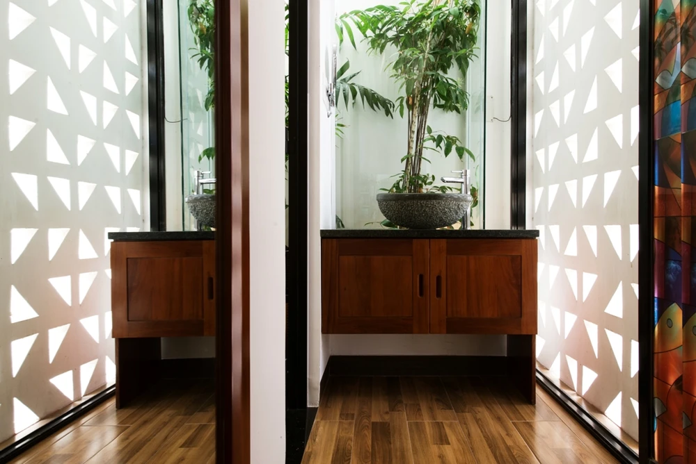 Toilet, tất cả đều được mở ra các khoảng xanh, ánh sáng, bóng nắng và gió nhẹ, tạo phút giây thư giãn cho chủ nhà.
