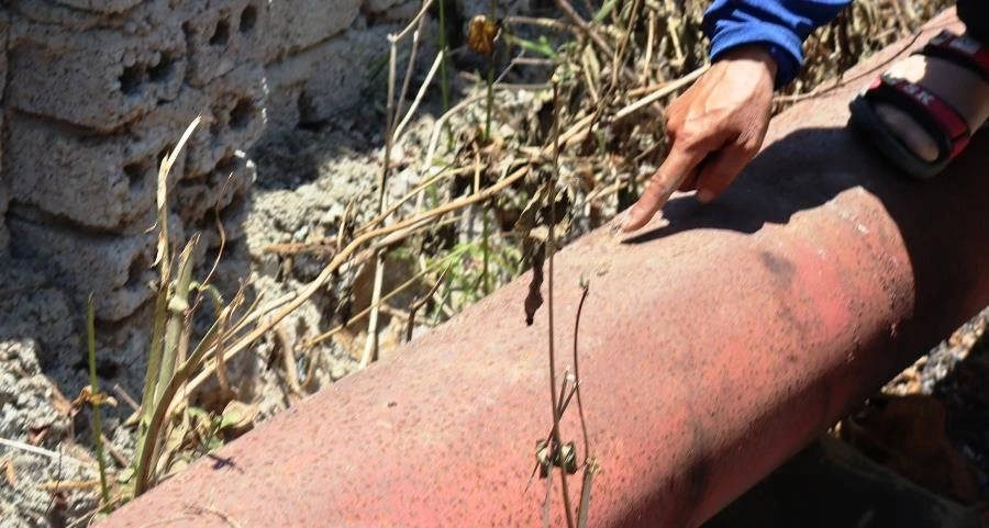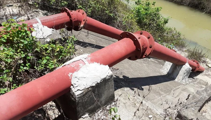 Ống đẩy nước thủy lợi thiết kế dày 4 mm nhưng thực tế thì chỉ dày 3 mm, nhiều đoạn đã bị móp, hoen gỉ.