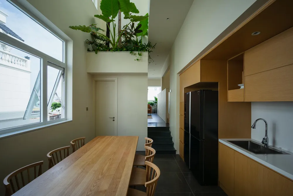 Kiến trúc sư tổ chức trục giao thông trải dài theo một phía giáp với công trình liền kề.