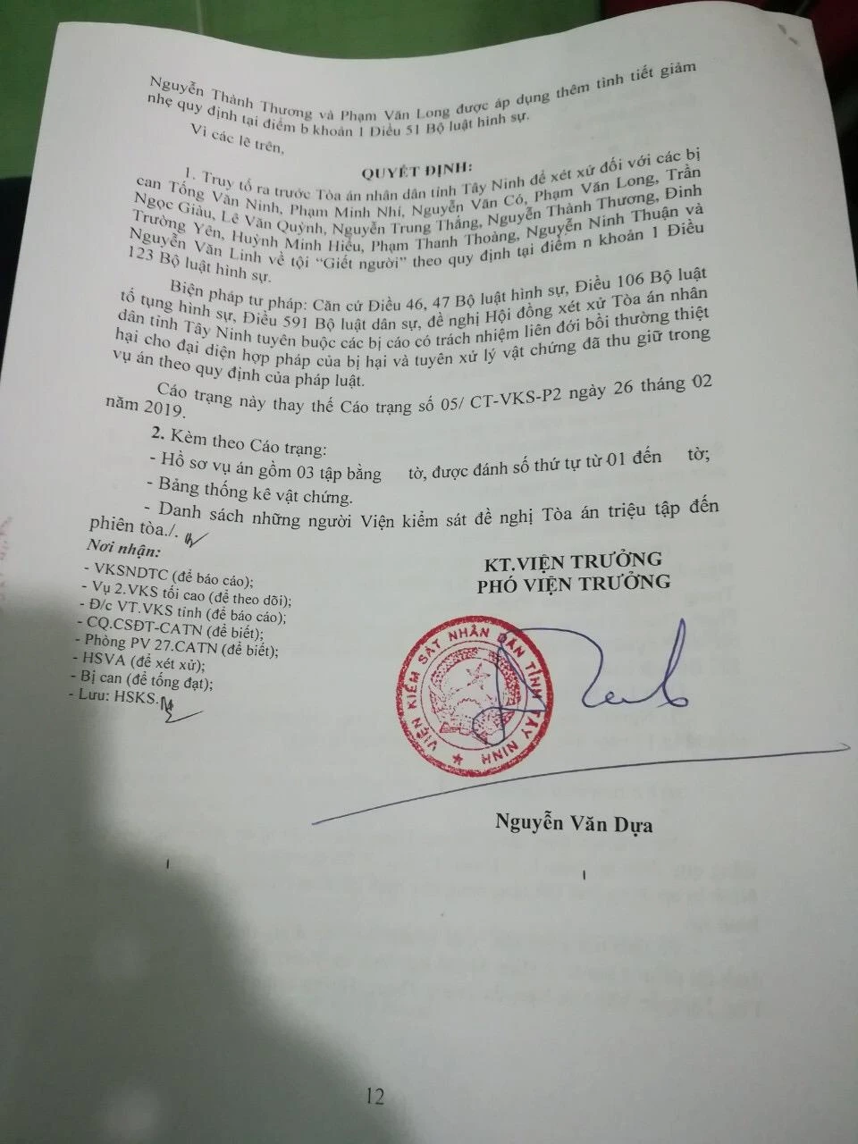 VKSND tỉnh Tây ninh vừa ban hành cáo trạng truy tố Phạm Minh Nhí (SN 1999), Tống Văn Ninh (SN 2000) cùng 11 đồng phạm về tội giết người theo quy định tại điểm n khoản 1 Điều 123 BLHS. Nạn nhân trong vụ án là anh Nguyễn Xuân Bình.