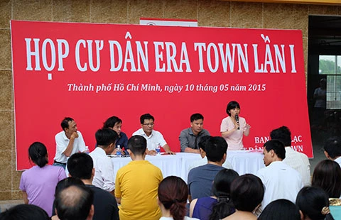 Tại chung cư Era Town, do chủ đầu tư không chịu tổ chức hội nghị nhà chung cư nên người dân tự tổ chức họp dân để lấy ý kiến về phí quản lý nhà chung cư. Ảnh: M.QUÝ