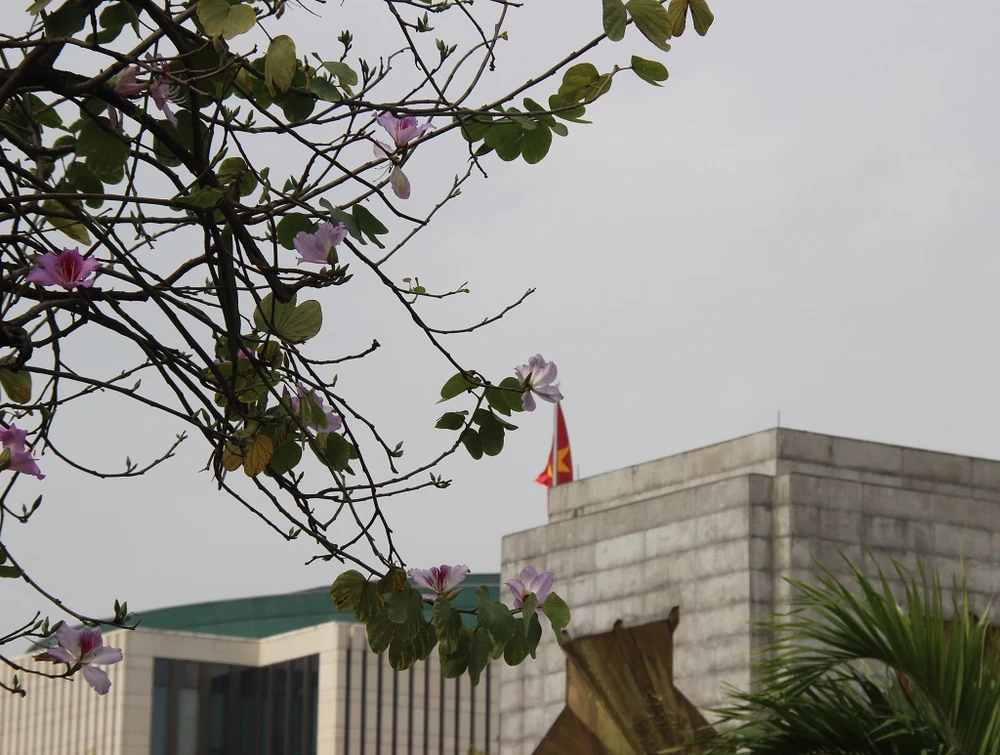 Hoa ban đằm thắm bên tòa nhà Quốc hội.